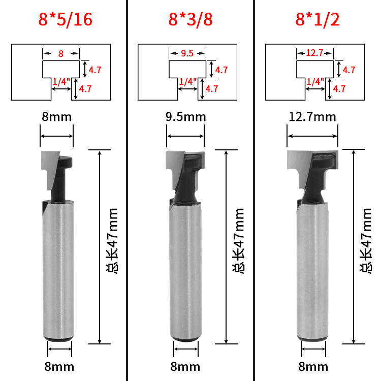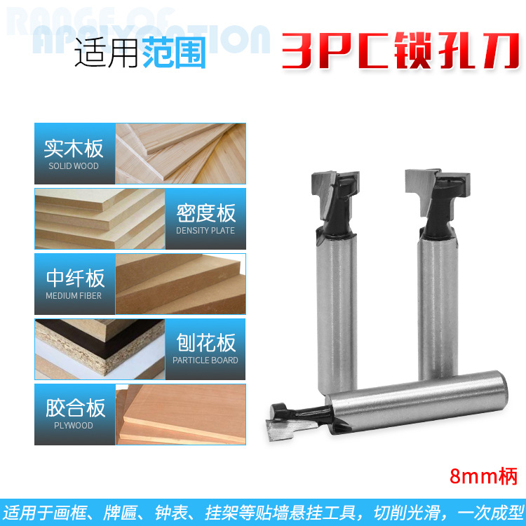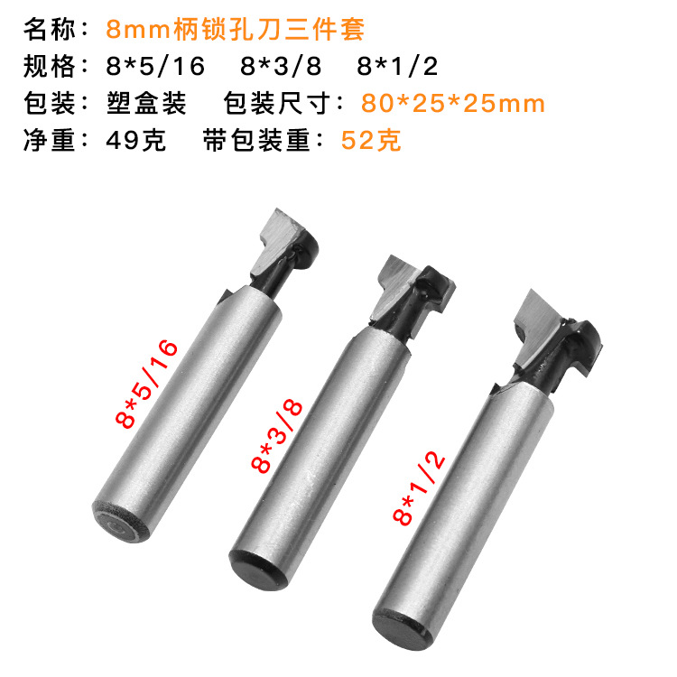 Деревообрабатывающий фрезек 8 -миллиметровый нож ручной работы, T -образные поры, деревянная настенная рама, открытое отверстие Трехнологическое набор 5/16 3/8 1/2