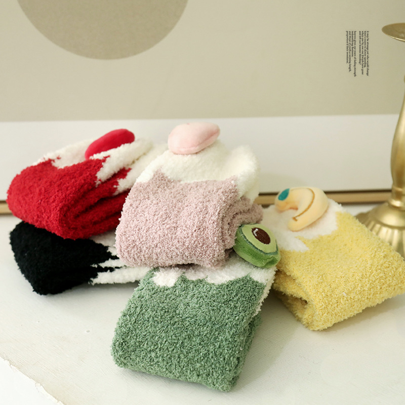 Коралловые бархатные носки, удерживающие тепло милые гольфы, увеличенная толщина, средней длины