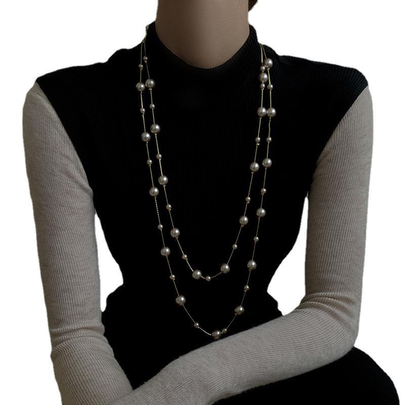 - Цвет : White Pearl Double -Layer Sweater Chain , Свитер цвета шампанского