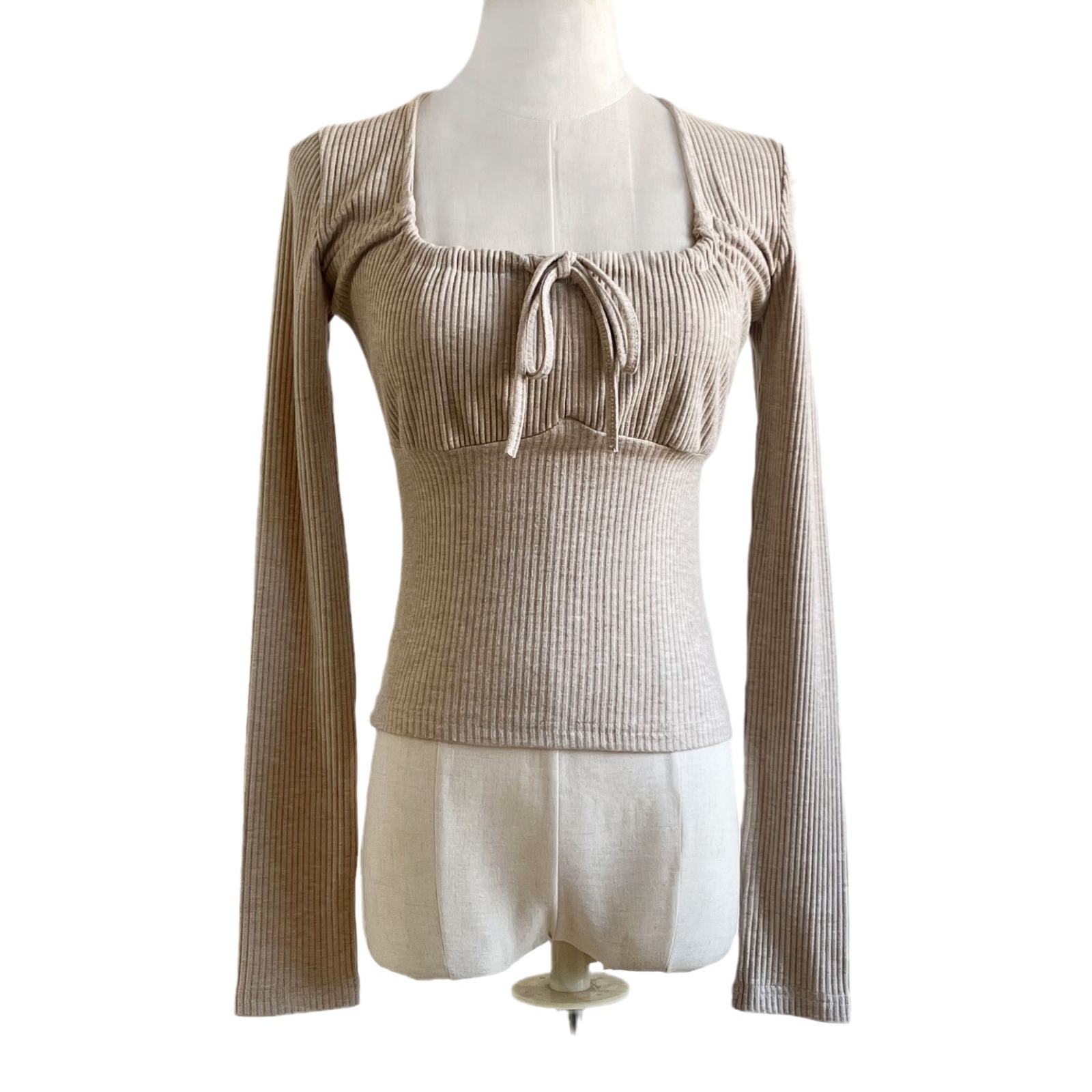 Осенний милый лонгслив, на шнурках, квадратный вырез