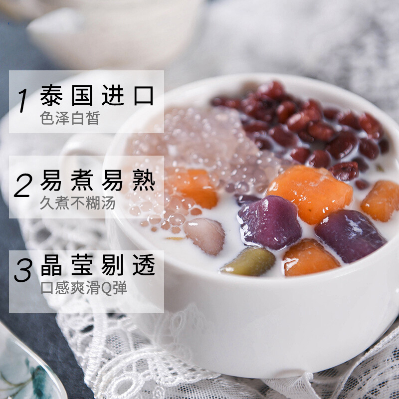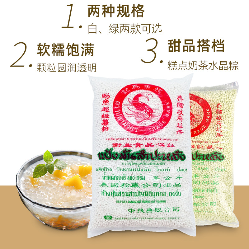Тайский крокодиловый белый саго 500G Кэссава крахмал маленький зерновой тополь с росой и сладкий десерт для чая молока