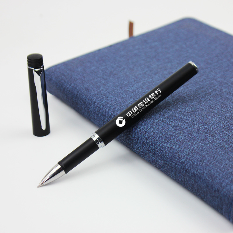 Черная металлическая ручка-роллер, делается под заказ, с печатью вашего логотипа