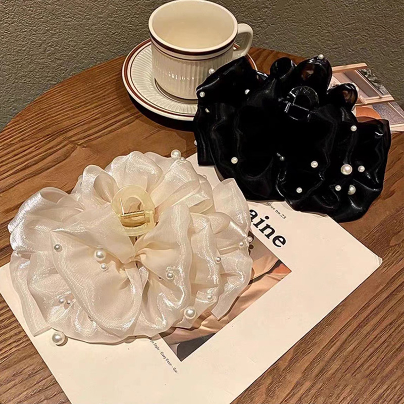 Многослойная заколка-крабик из жемчуга с бантиком, большая заколка для волос, акула, новая коллекция