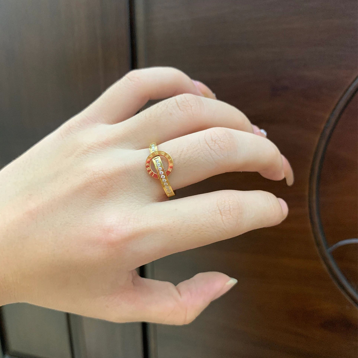 Небольшое дизайнерское модное кольцо с драгоценными камнями из нержавеющей стали, брендовый аксессуар, европейский стиль, 18 карат, не выцветает