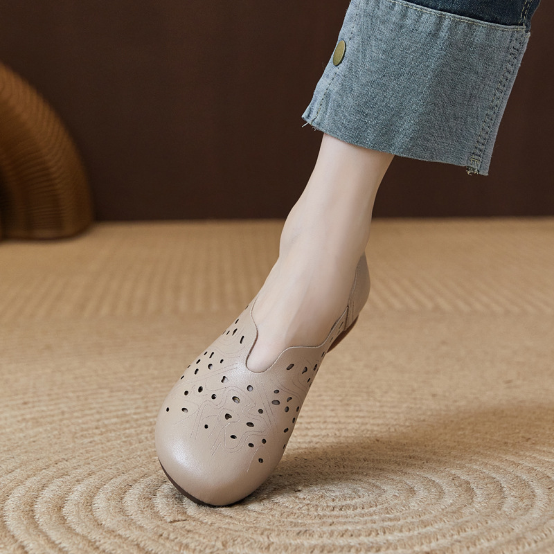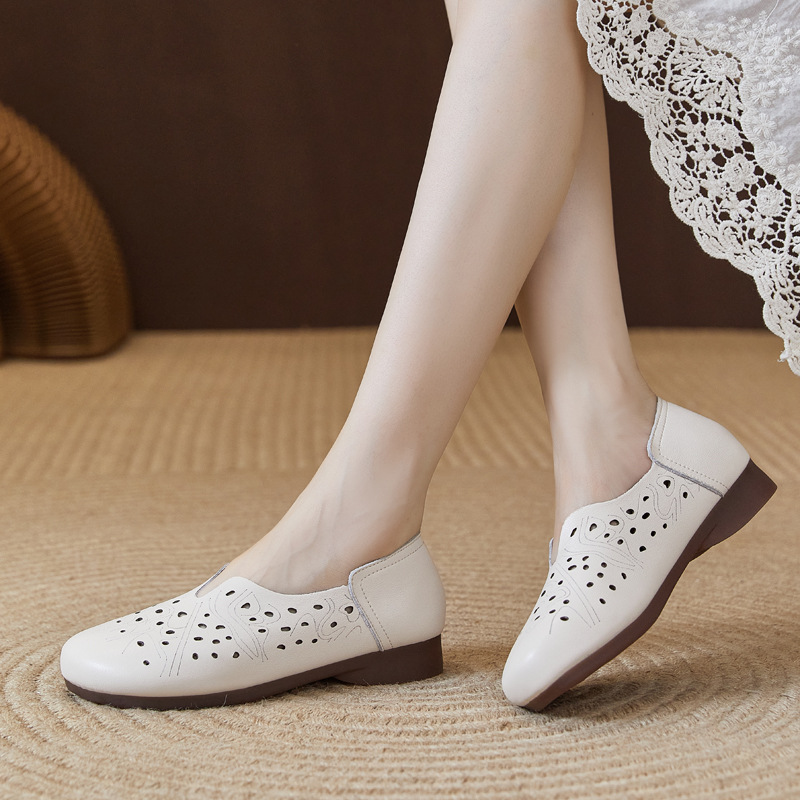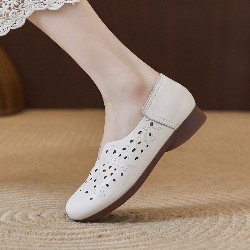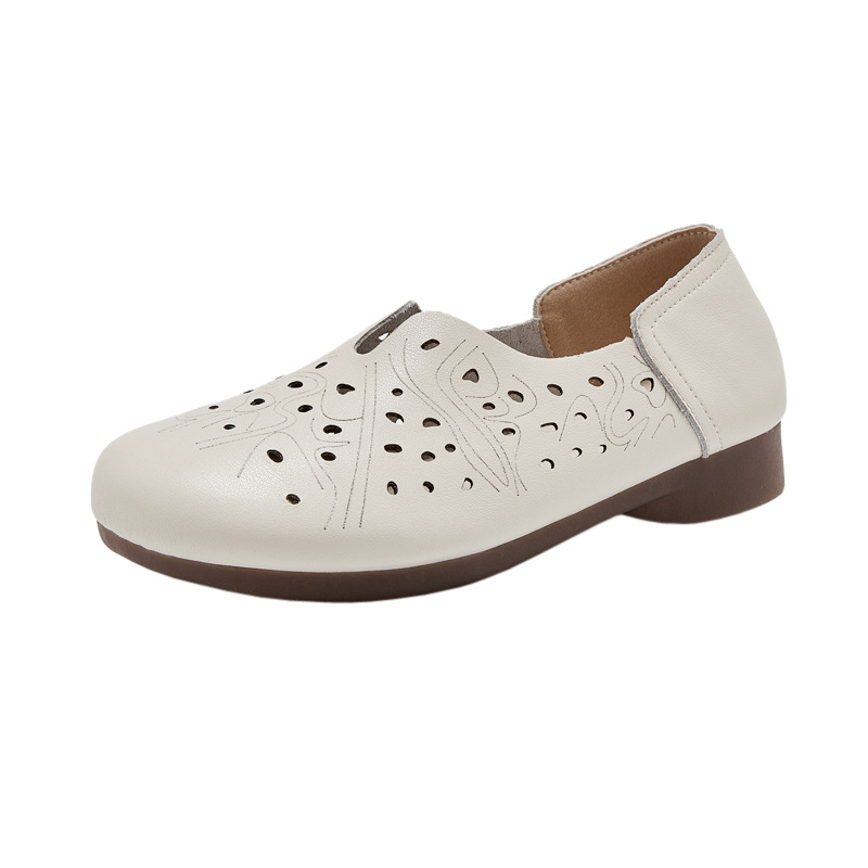 Весенние нескользящие дышащие сандалии для матери, из натуральной кожи, мягкая подошва, для среднего возраста