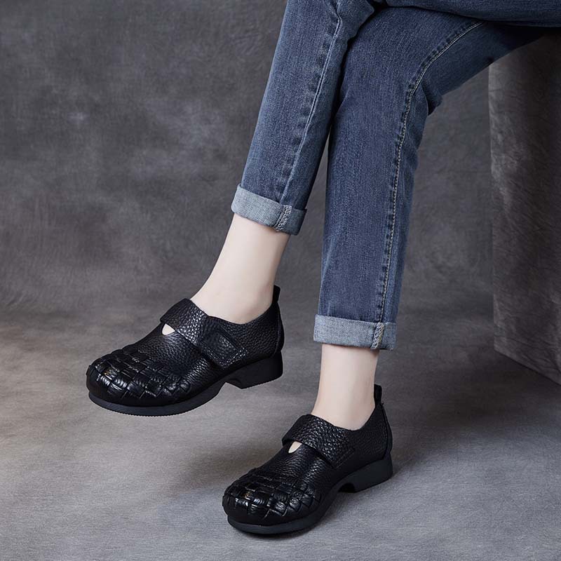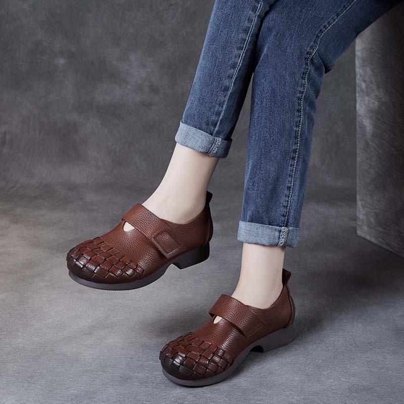 以一 Весенне-осенние новые женские туфли в этническом стиле в стиле ретро ручной работы на мягкой подошве, повседневные лесные женские туфли на плоской подошве с неглубоким открытым носком