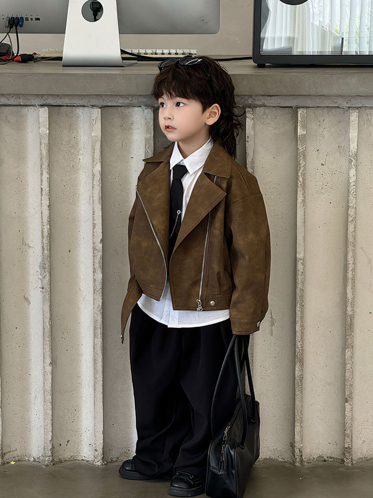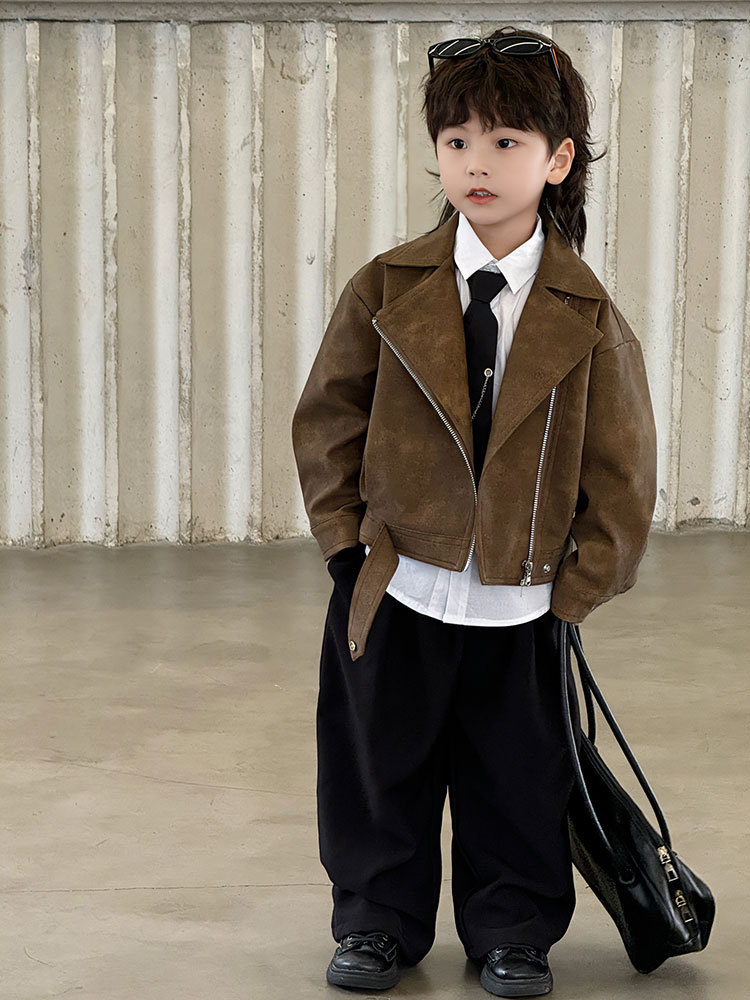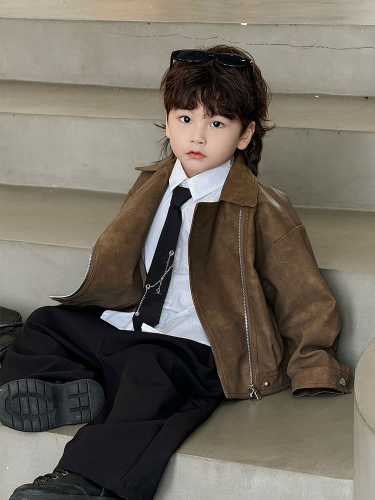 - Цвет : Коричневый кожаный топ , Коричневая кожаная куртка черные брюки 918 , Комплект штаны рубашка цепь галстук 4 предмета