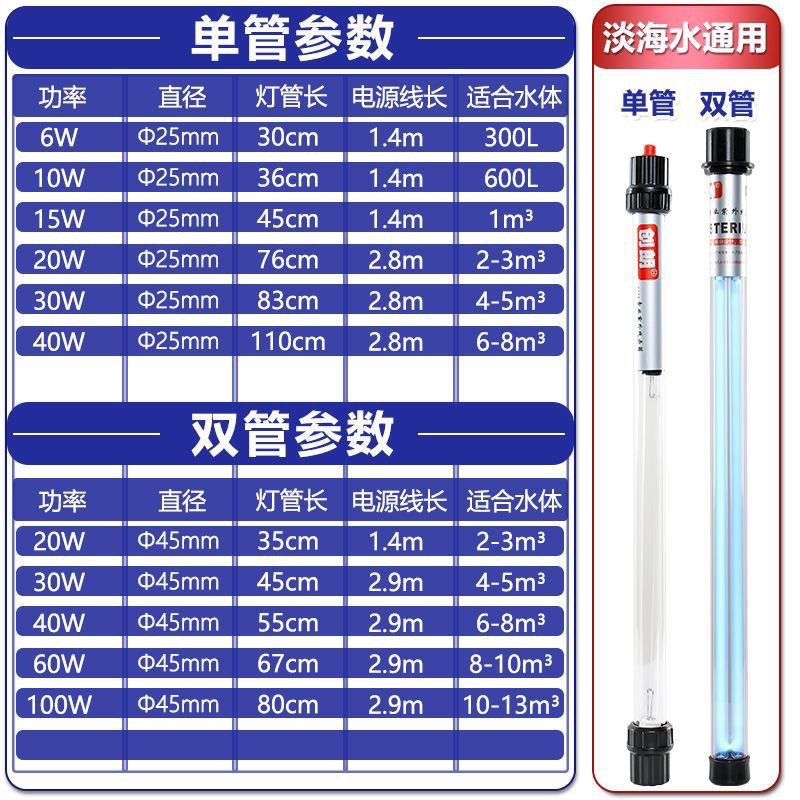 - Цвет : Одна трубка 6 Вт 30 см , Одна трубка 10 Вт 36 см , Одна трубка 15 Вт 45 см , Одна трубка 20 Вт 76 см , Одна трубка 30 Вт 83 см , Одна трубка 40 Вт 106 см , Двойная трубка 20 Вт 33 см , Двойная трубка 30 Вт 44 см , Двойная трубка 40 Вт 53 см , Двойная трубка 60 Вт 65 см , Двойная трубка 80 Вт 83 см , Двойная трубка 100 Вт 83 см , Двойная трубка 150 Вт 65 см , Двойная трубка 200 Вт 76 см