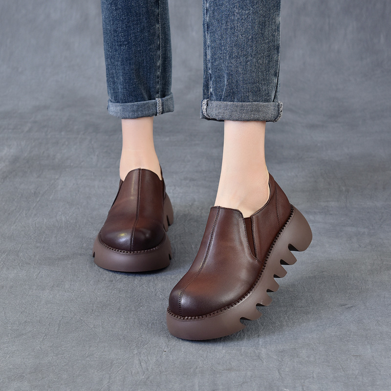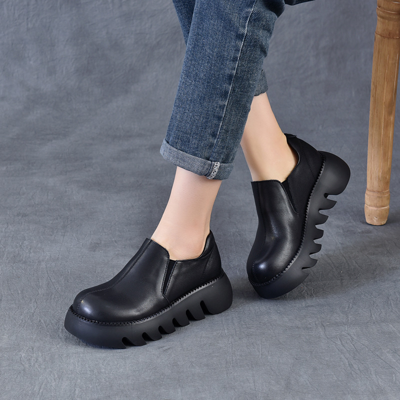 以一 Весенне-осенняя повседневная женская обувь из воловьей кожи на толстой подошве и платформе в стиле ретро с носком, универсальная, удобная и простая четырехсезонная обувь