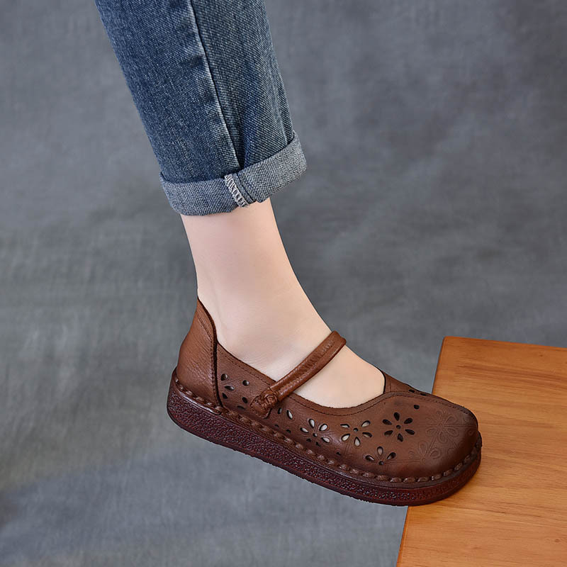 以一 Кожаные этнические ретро босоножки, воловья кожа, мягкая подошва, этнический стиль