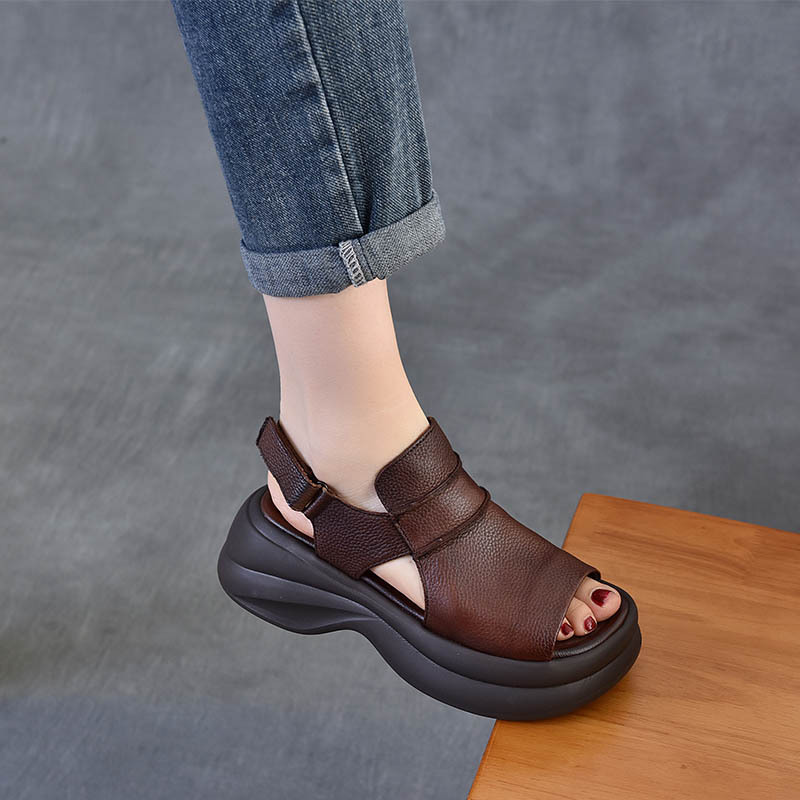 以一 Летние универсальные сандалии на платформе, кожаная пляжная обувь для отдыха, воловья кожа