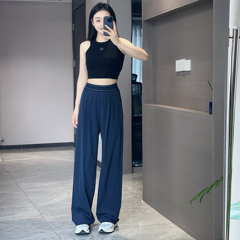 Спортивные легкие и тонкие быстросохнущие штаны для отдыха для йоги, высокая талия, по фигуре, свободный прямой крой