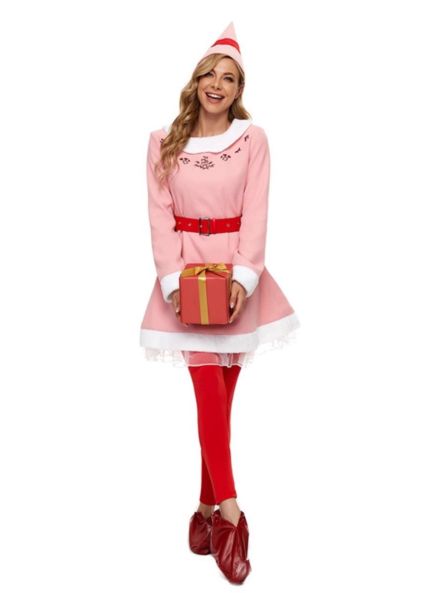 - Цвет : Рождественский костюм эльфа комплект из пяти предметов , Клоун Девушка , Женский Розовый Эльф