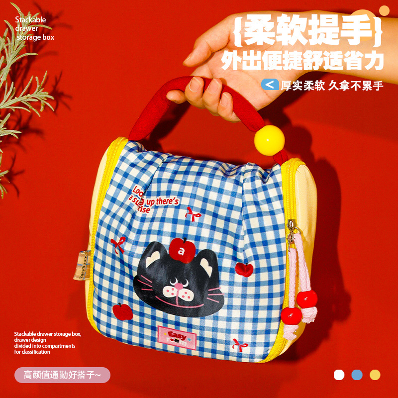 , Синяя клетчатая накидка с хлопковым низом в виде щенка небольшая оксфордская флип-сумка для хранения косметики