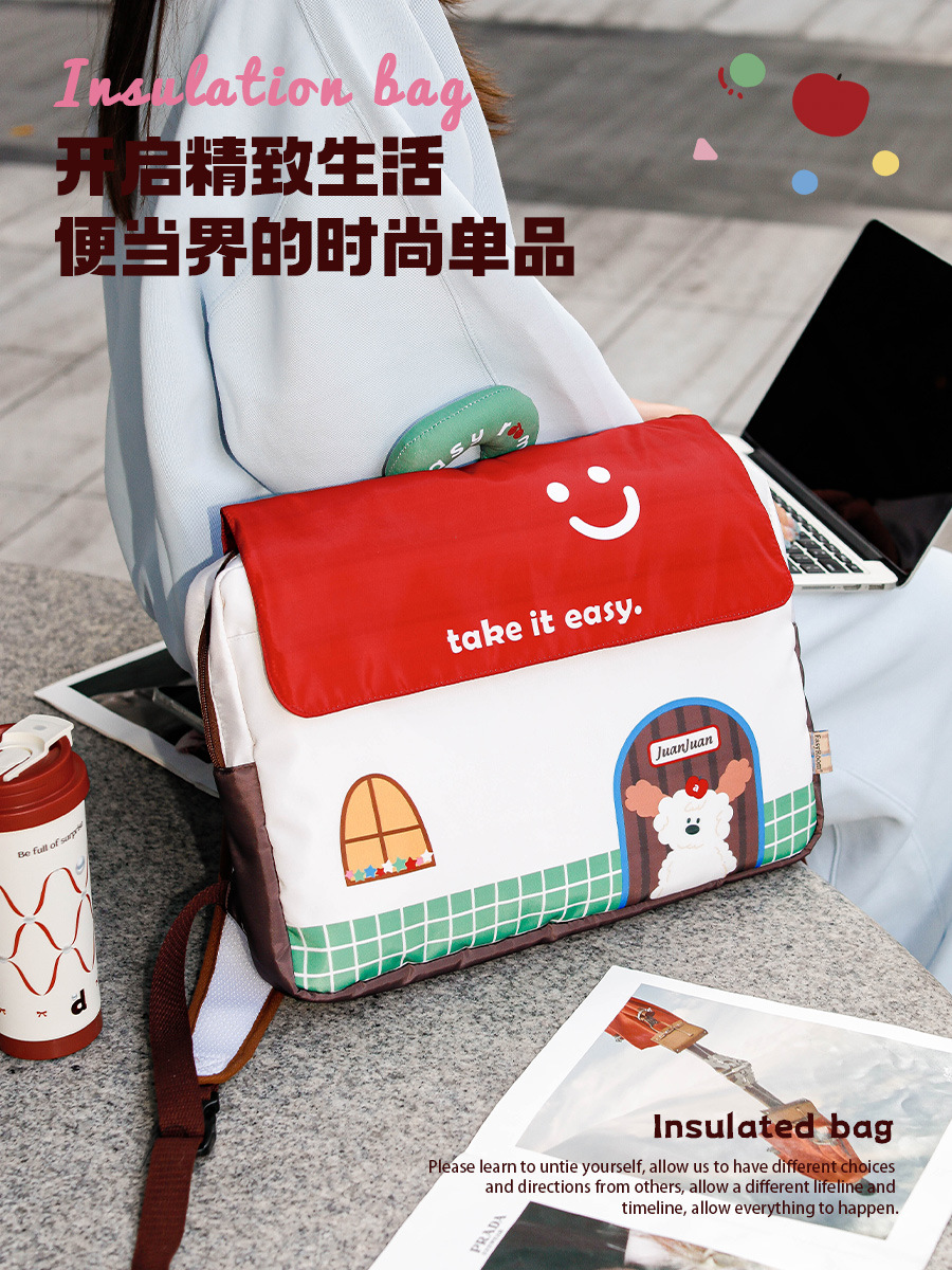 , Хлопковое дно Оксфорда с черной нитью - Apple House Juanjuan - портативная оксфордская сумка для компьютера на двойное плечо с хлопковым дном