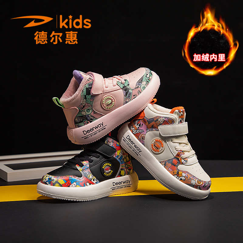 Детские туфли, спортивная обувь, мультяшные высокие флисовые кроссовки, 2022
