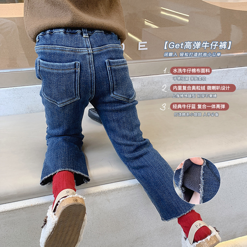 Штаны, детский пуховик, джинсы, бархатные леггинсы, в западном стиле, в корейском стиле, увеличенная толщина