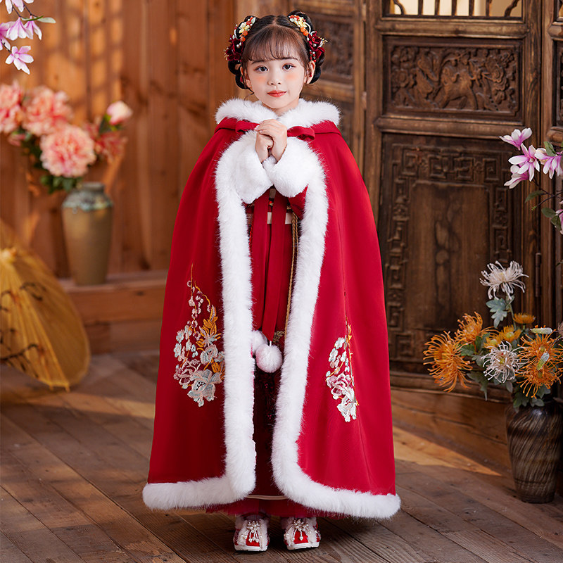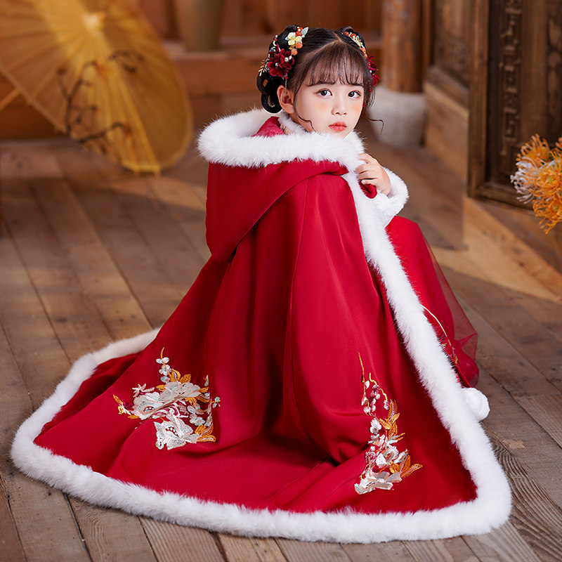 Утепленный демисезонный плащ для выхода на улицу, детское зимнее ханьфу для принцессы, китайский стиль