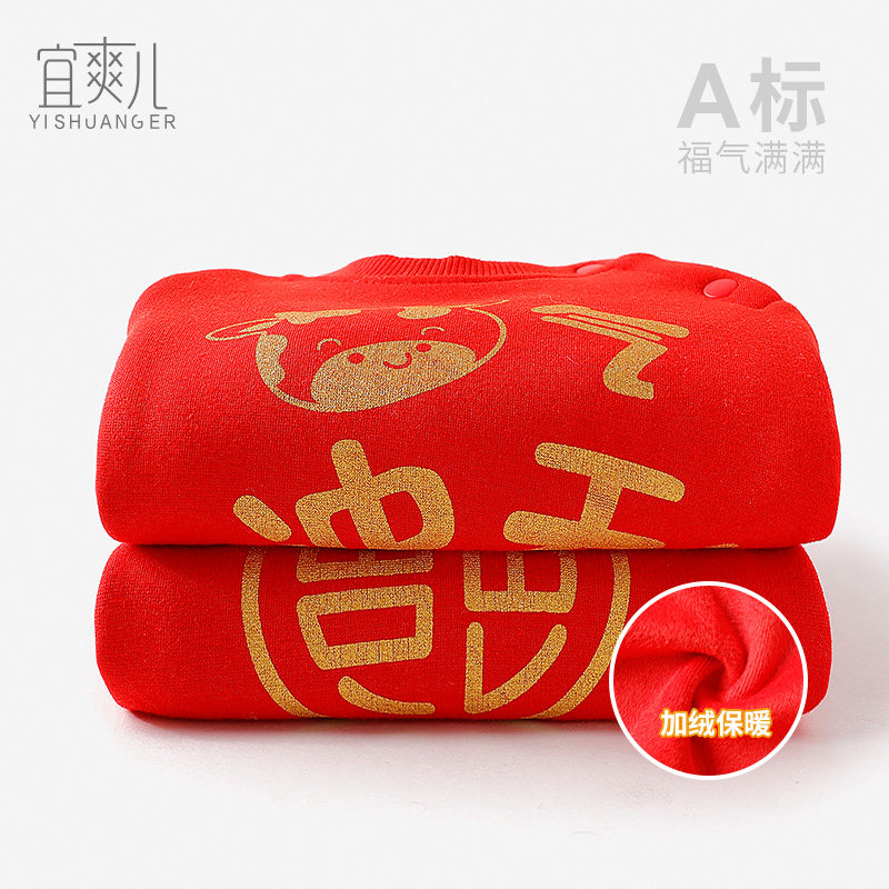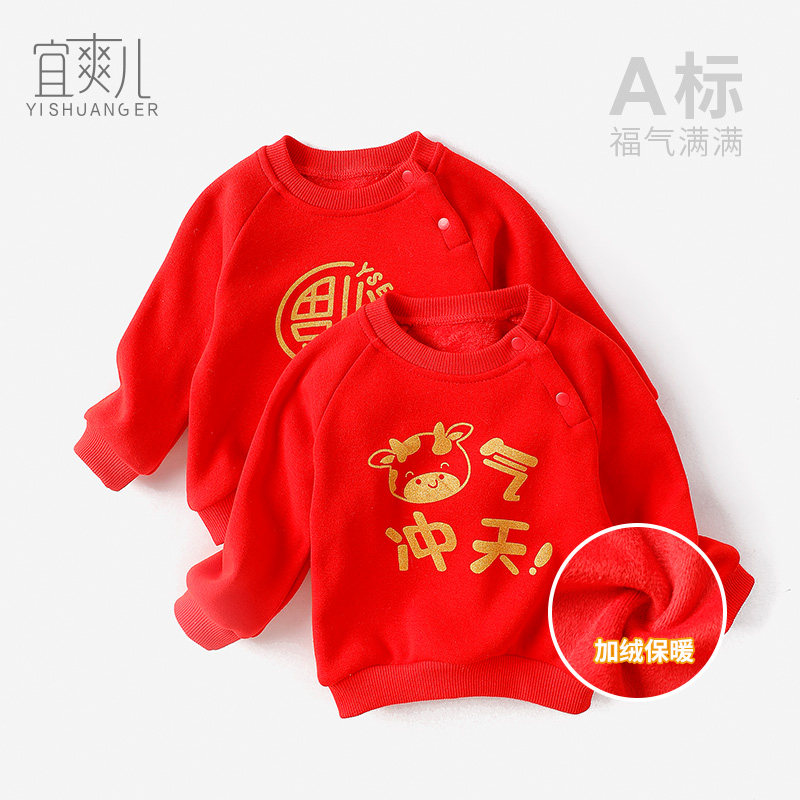 Детская осенняя демисезонная утепленная толстовка, красный праздничнный чай улун Да Хун Пао для мальчиков, увеличенная толщина