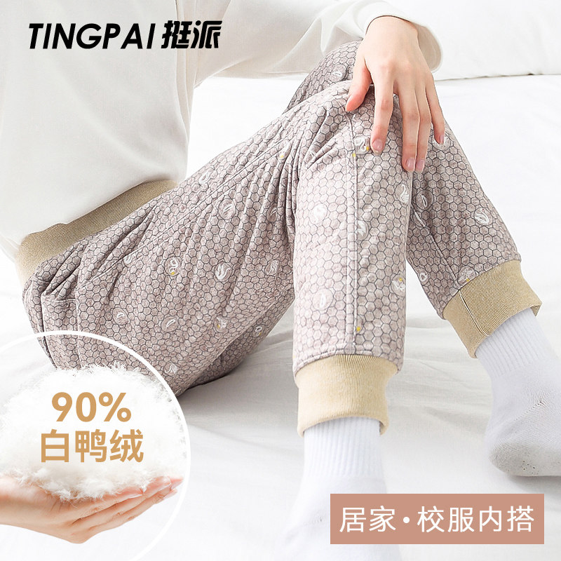 Детские штаны с пухом, зимний вкладыш, высокая талия, увеличенная толщина