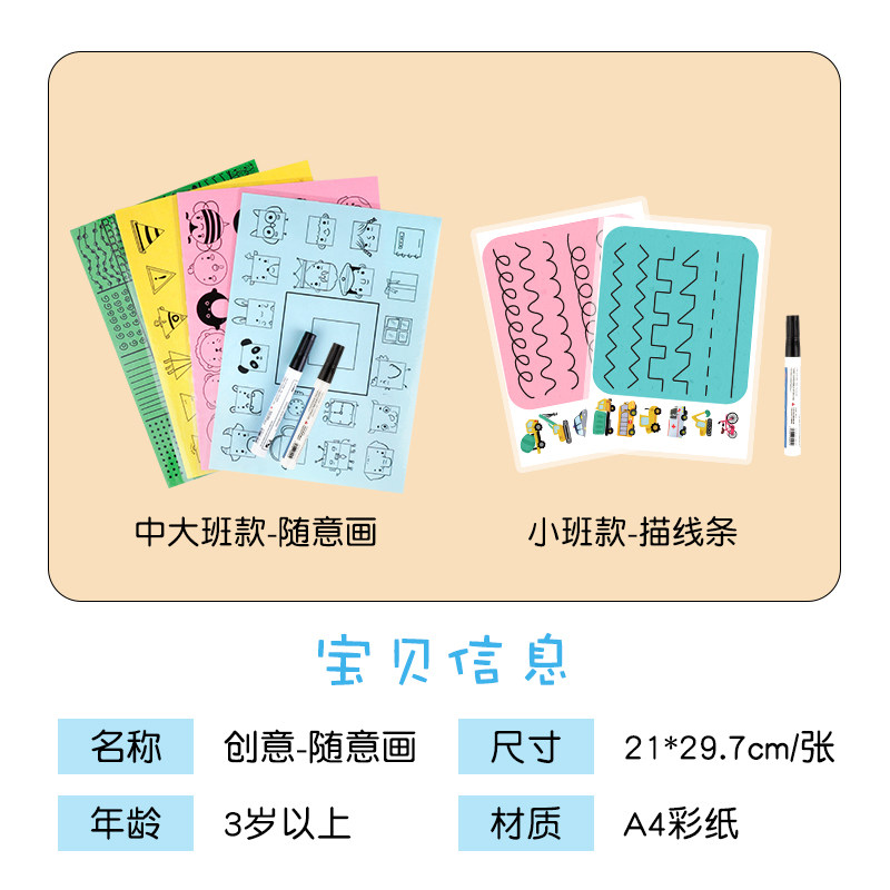Детский сад арт -район живопись Материалы творческие картины Случайная линия рисования A4 можно использовать повторно для использования игроков