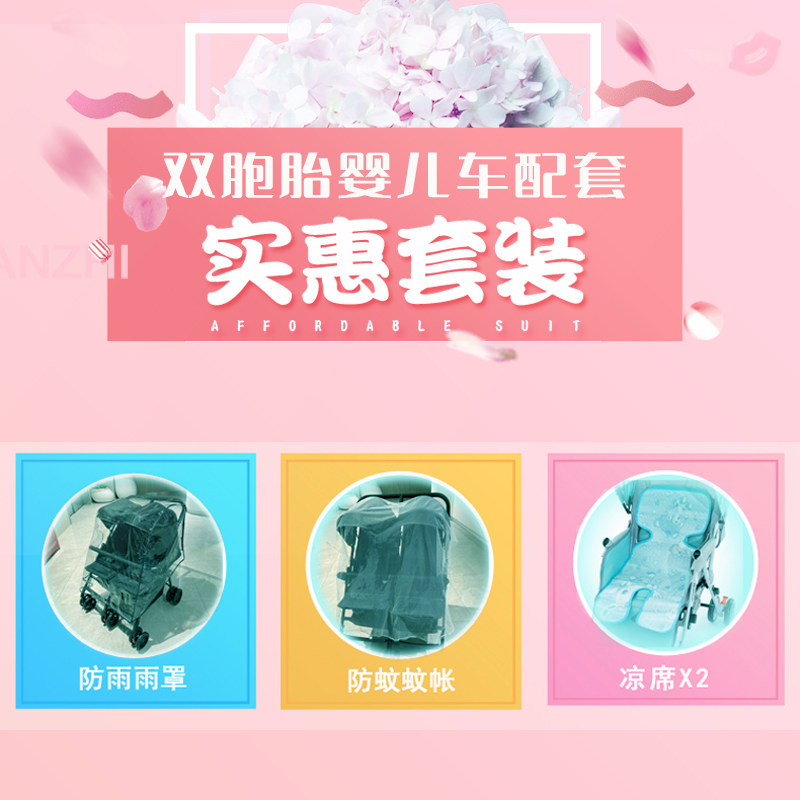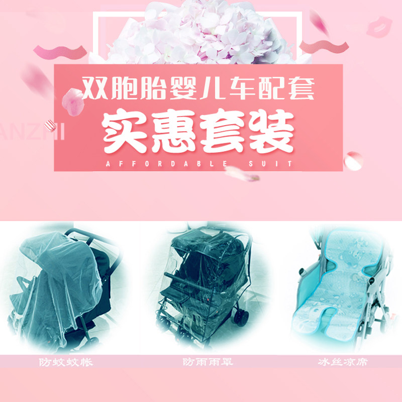 Коляска для близнецов, дождевик, коврик, москитная сетка