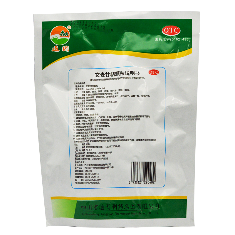 Tongyuan Xuanmai Gan Orange Granules 10G*20 мешков/мешки Очистка тепла, отеки горла и рисование QH