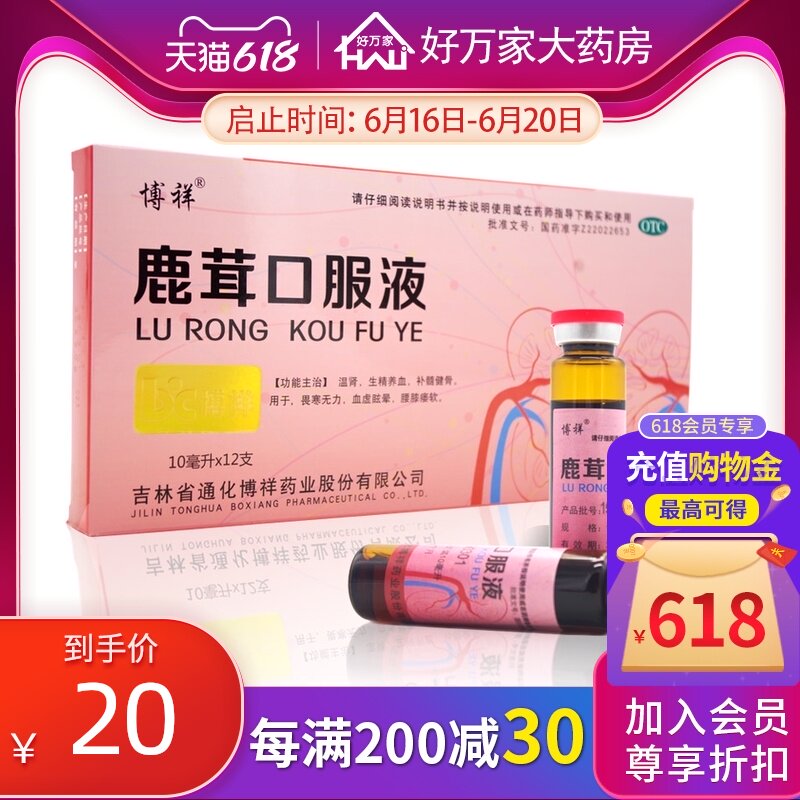 博祥 Раствор перорального раствора оленя 12 теплые почечные эссенции кровь питает кровь, питает остеофиты, дефицит мягкой крови колена и головокружение