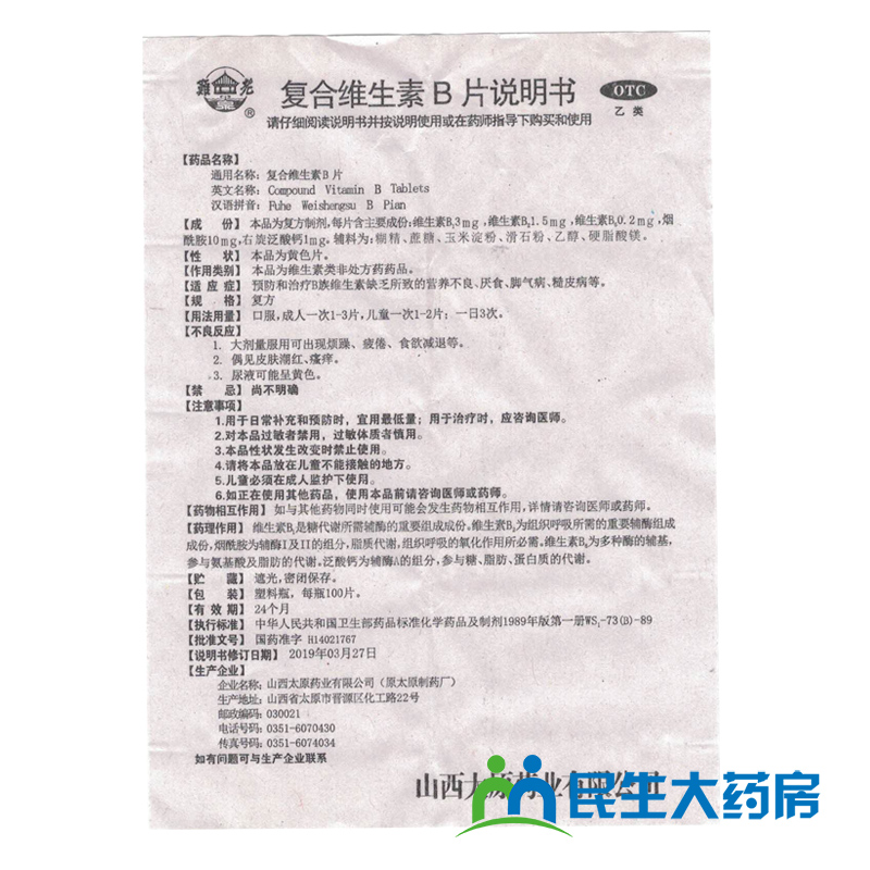 难老泉 Композитные таблетки витамина В 100 Таблетки недоедания, анорексия, грубая кожная заболевания избиения