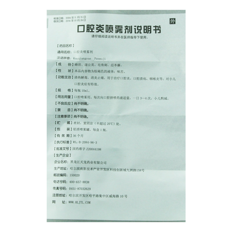 天龙 Спрей для стоматита 10 мл*1 бутылка/коробка тепла, детоксикация, антиобломающая анальгетика воспалительная пероральная язва Фарингит