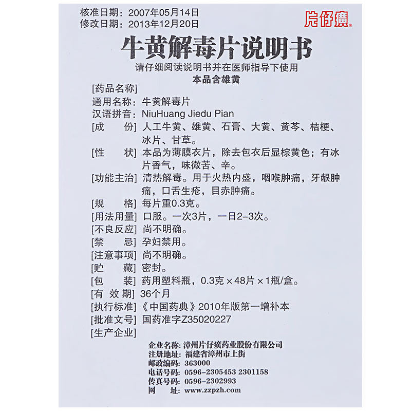 Pien Tze Huang/Pianzi Niuhuang Ядовитые таблетки 0,3 г*48 таблетки*1 бутылка/коробка