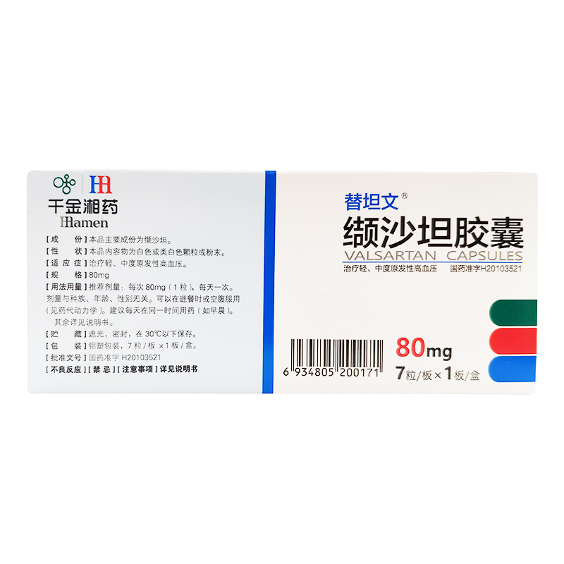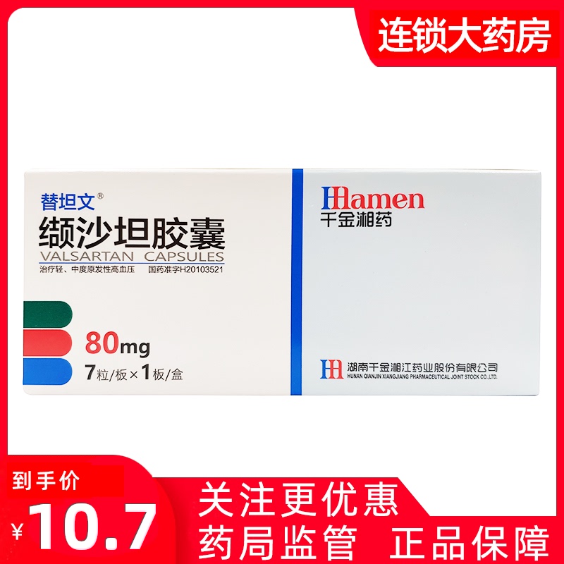 湘江 M 缬 缬 缬 80 мг*7 капсулы/коробка с более низким кровяным давлением Высокие подлинные продукты обеспечивают гипертонию, головокружение, замочивание ног, первичная прическа, высокое кровяное давление умеренная первичная гипертензия, гипертония, гипертония