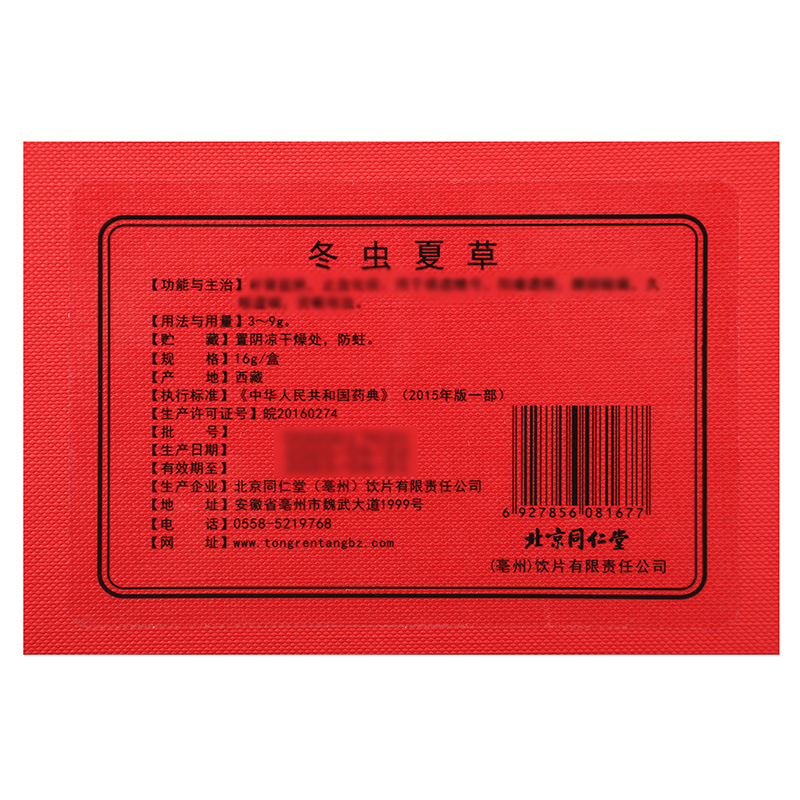 Пекин Тонгрентанг подлинный тибет cordyceps cordyceps Высокий подарочный подарок для старейшин 16G.