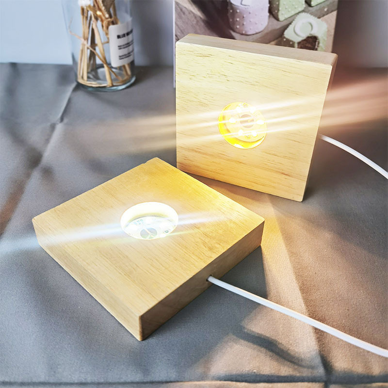Деревянный квадратный ночник, аквариум, светодиодная подставка для лампы