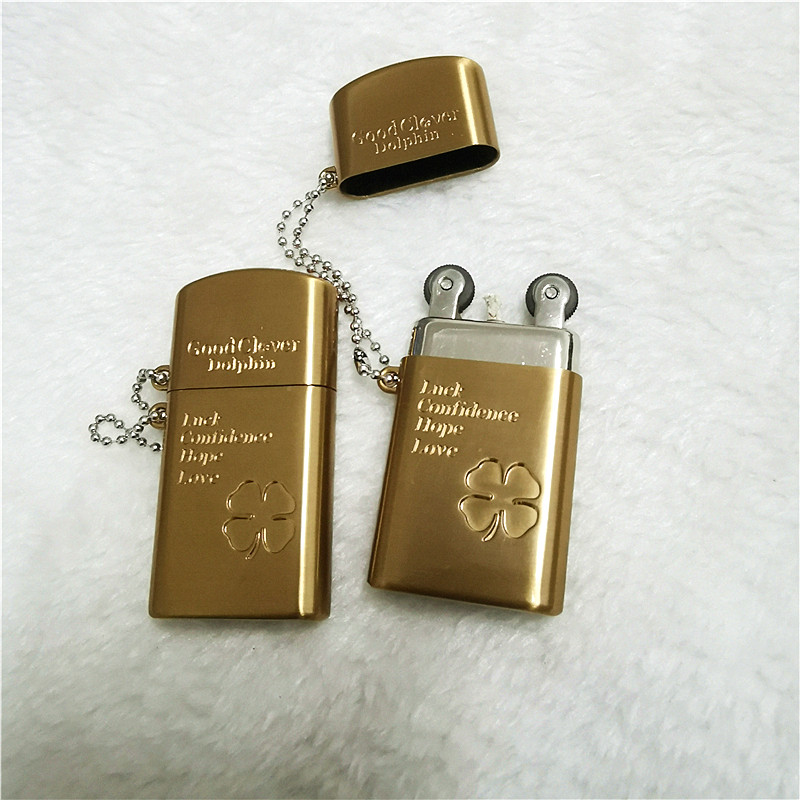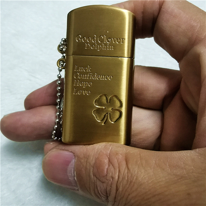 Металлическая креативная тонкая маленькая зажигалка на керосине, четырехлистный клевер