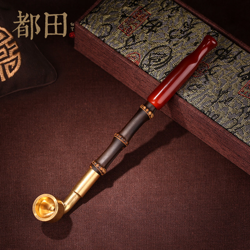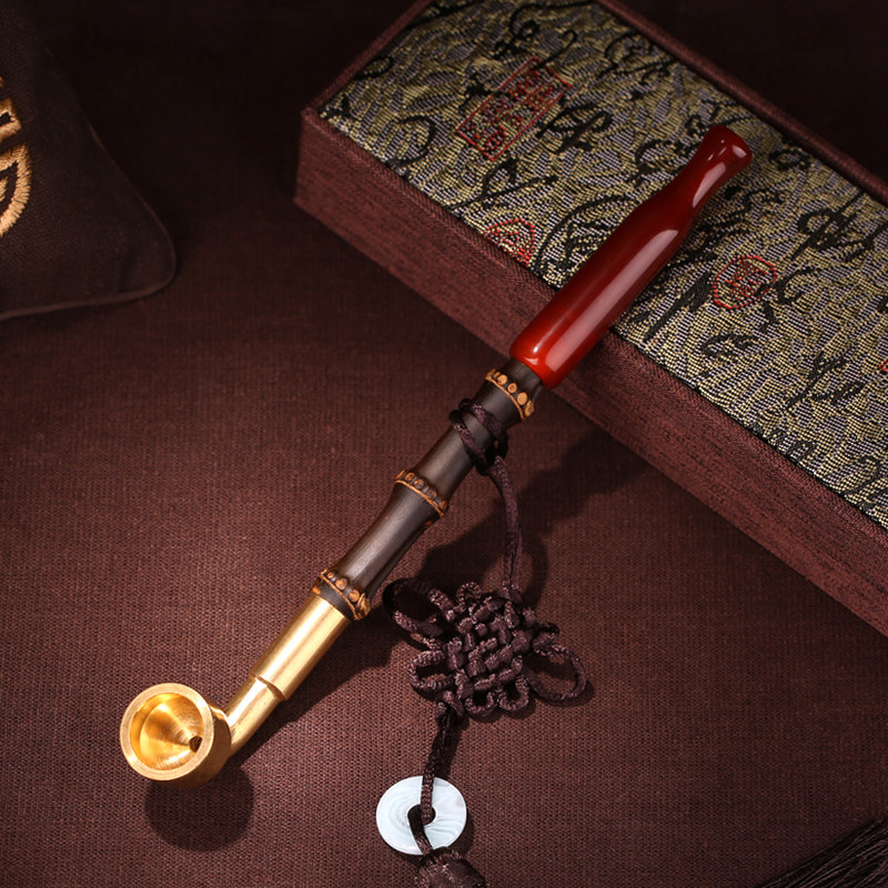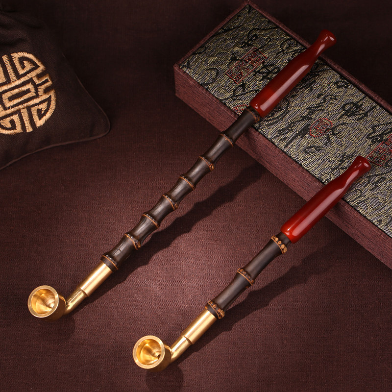 Мужская длинная ониксовая бамбуковая старомодная медная курительная трубка ручной работы, подарок на день рождения