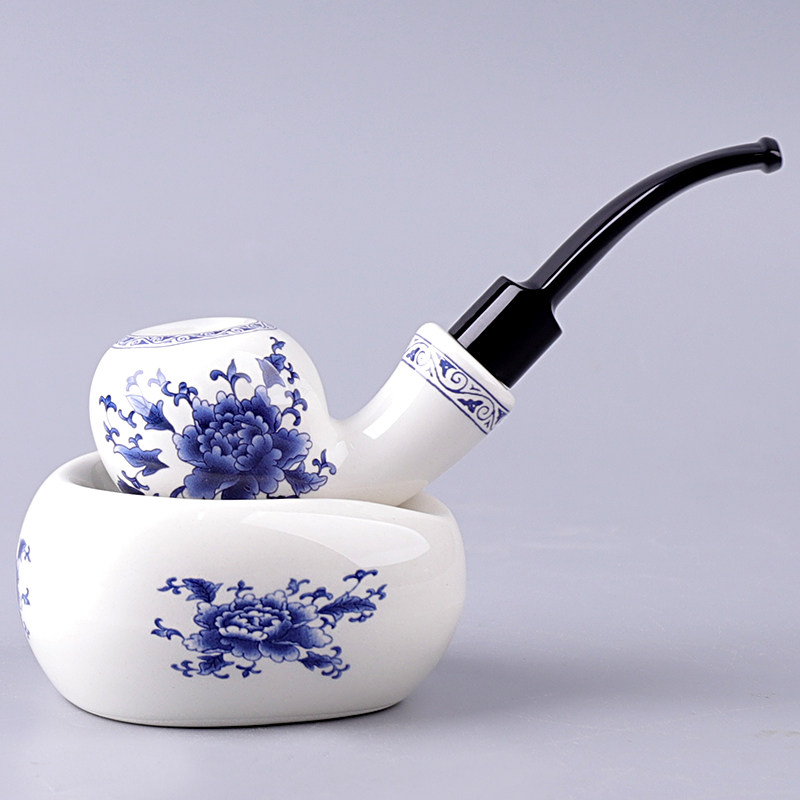 Apple, керамические сине-белые старомодные курительные принадлежности ручной работы