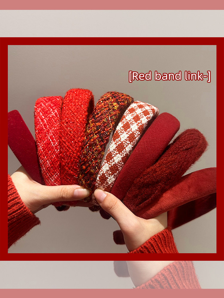 Полное описаниеКрасный высокий черепная повязка на голове 2025 Новый год высокая бархатная шпилька осень осень и зимняя шпилька для волос.