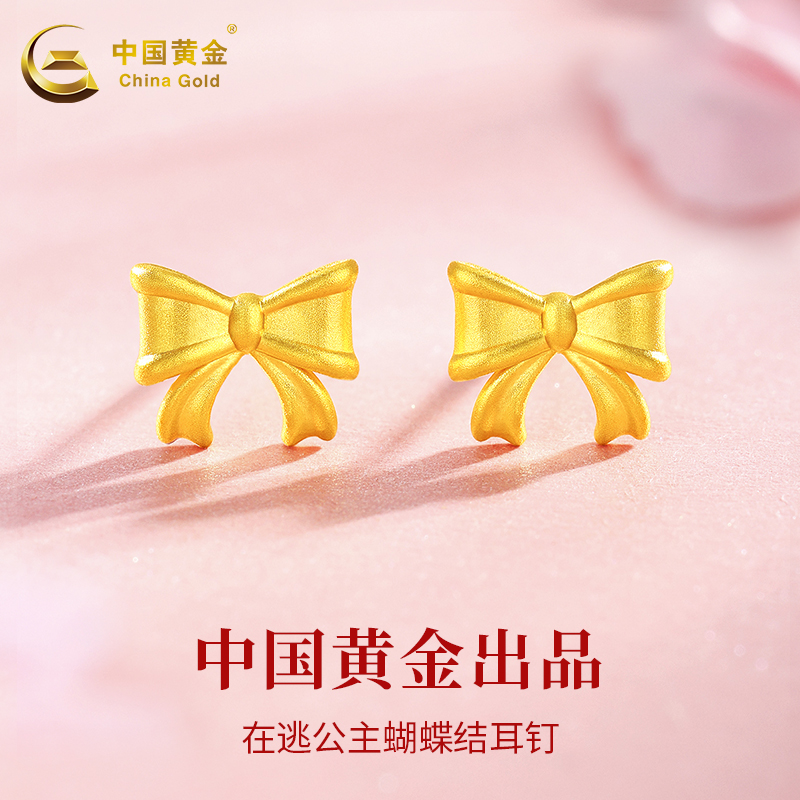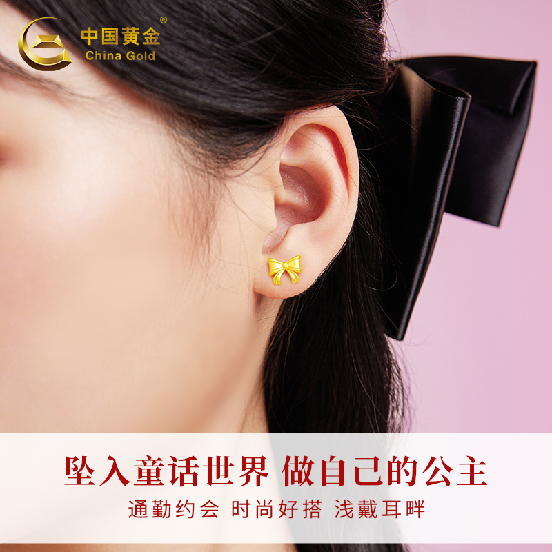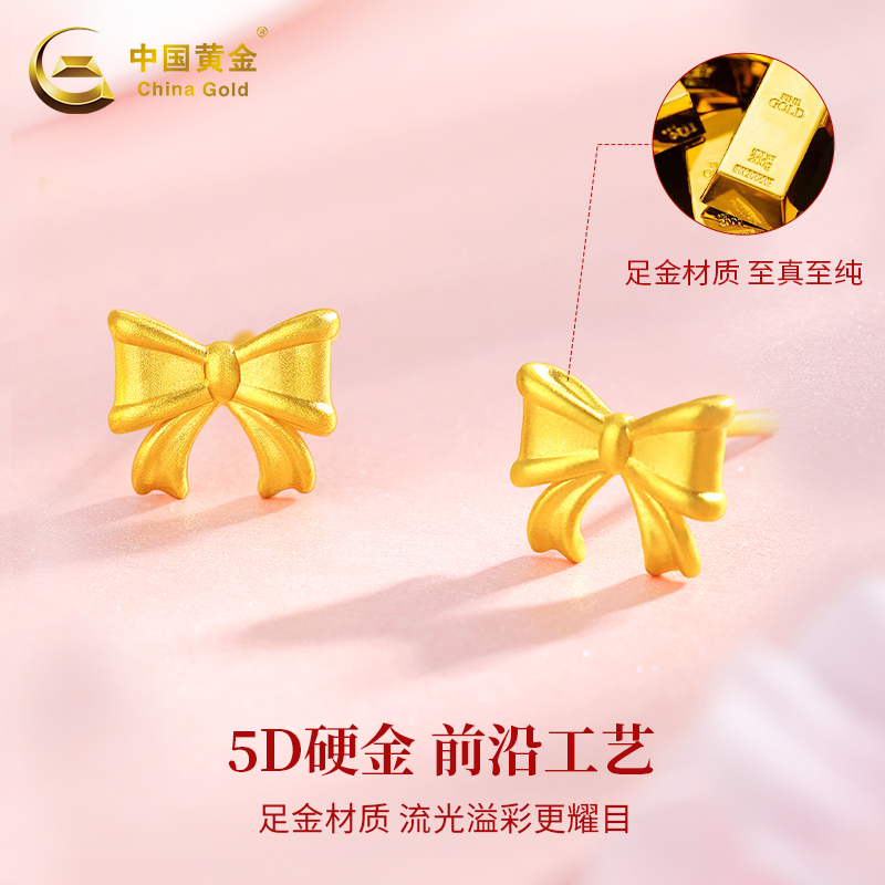 Золотые серьги с бантиком, подарок на день рождения