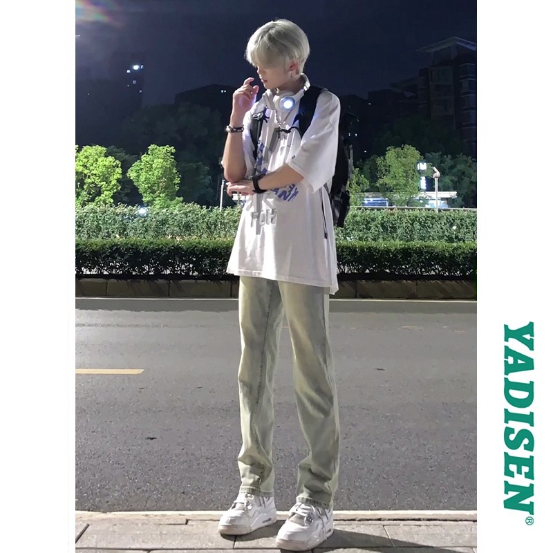 Американская атмосфера High Street Pants Men's CleanFit вымытые желтые грязные джинсы стройные ножницы для ножниц