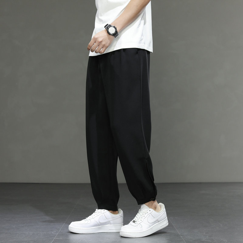 Мужские летние шелковые штаны, тонкие универсальные быстросохнущие дышащие повседневные брюки, свободный прямой крой