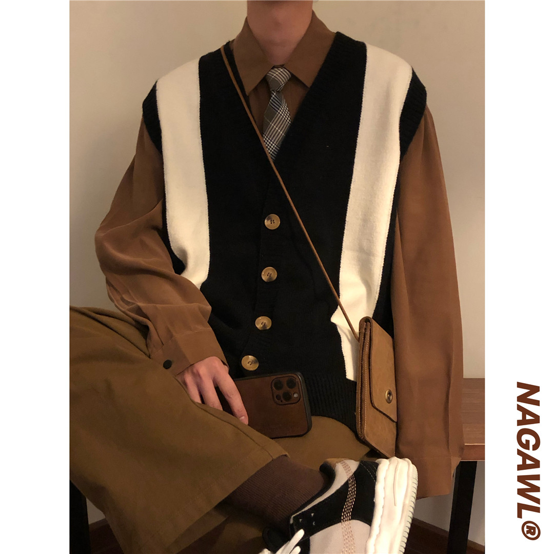 Осенний японский ретро кардиган, свитер для влюбленных, трикотажный жилет, оверсайз