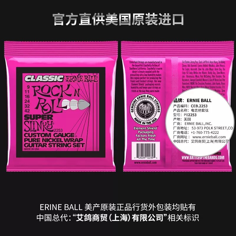 Подлинный американский Эрни Болл Эб Электро -гитарная струна Slinky Classic Rock Strings