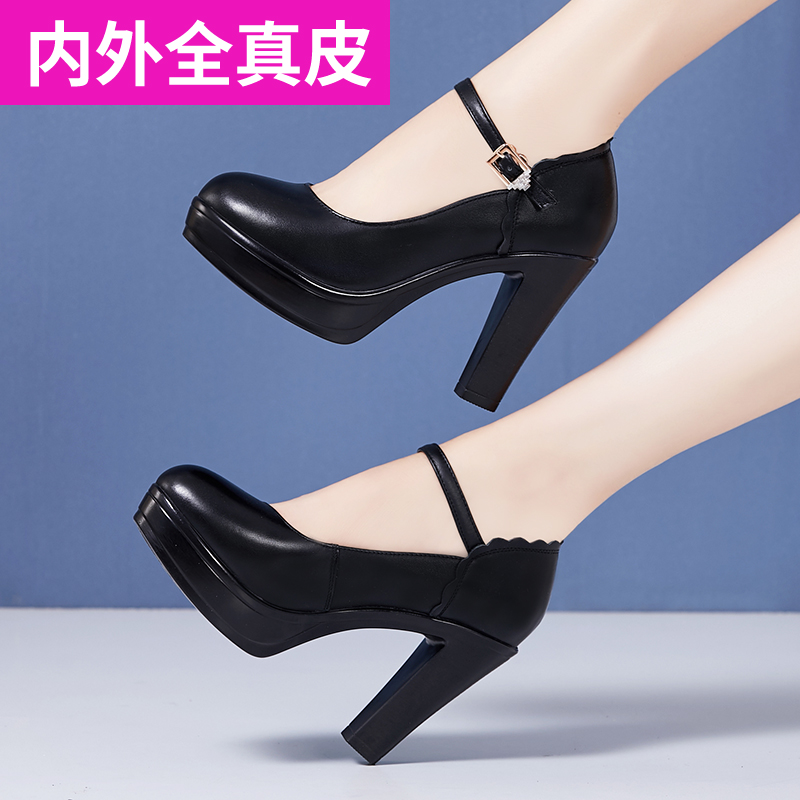 Ципао для матери, манекен головы, высокие водонепроницаемые туфли на высоком каблуке на платформе, черная обувь, для среднего возраста, из натуральной кожи