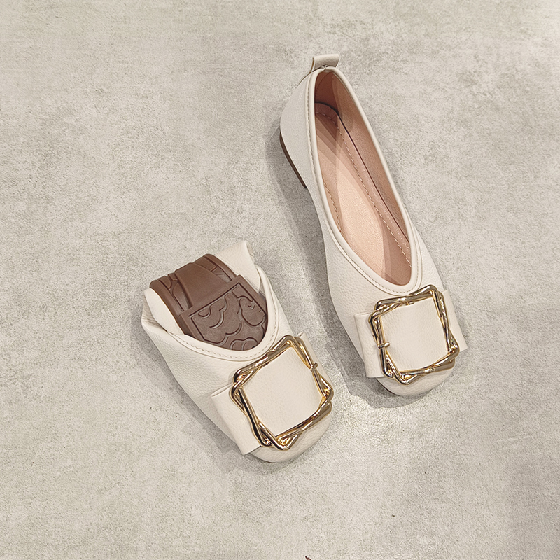 2024 Весенняя плоская единственная квадратная квадратная носка для одиночной обувь для женского неглубокого рта.