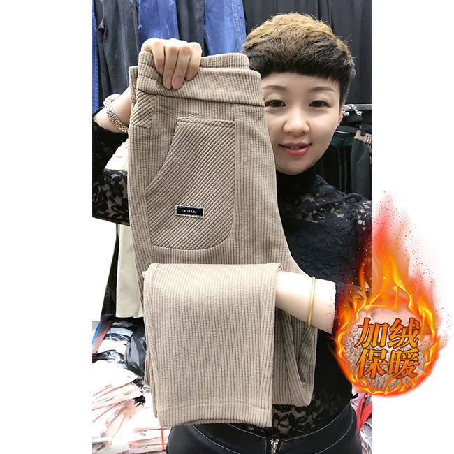 恩川 Утепленные демисезонные штаны, леггинсы, большой размер, высокая талия, свободный крой