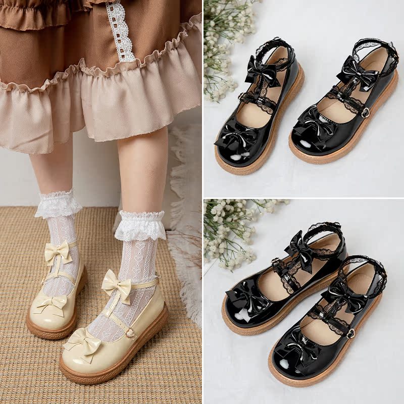 Голова куклы на платформе, туфли, черная обувь для кожаной обуви, осенняя, стиль Лолита