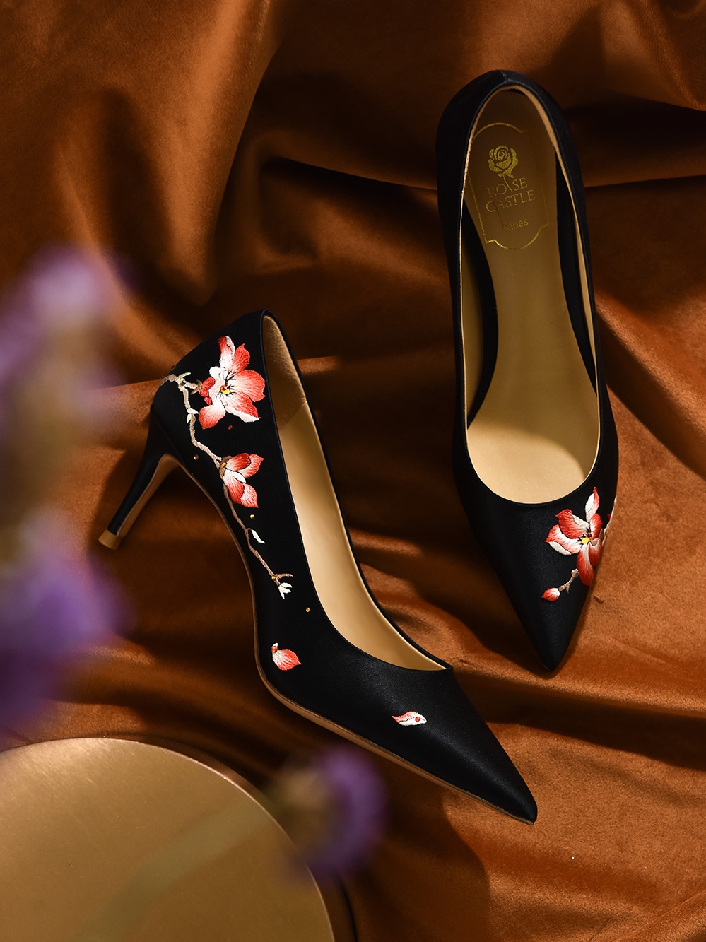 Оригинальное платье, туфли, ципао, черная обувь на высоком каблуке, орхидея, с вышивкой