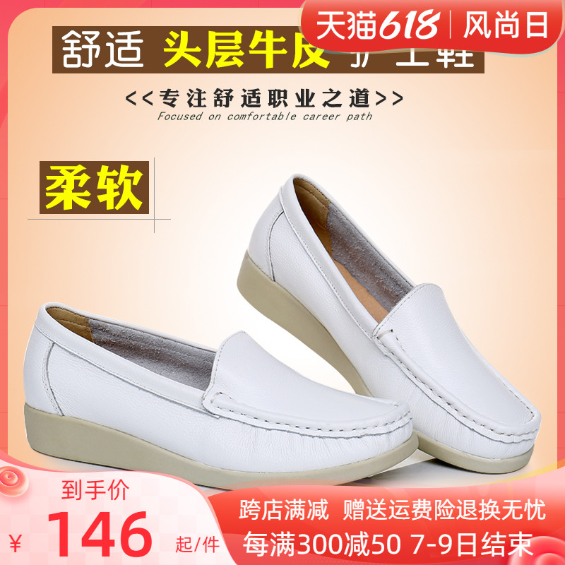 Кожаная униформа медсестры, обувь для отдыха, нескользящие туфли для матери, воловья кожа, мягкая подошва