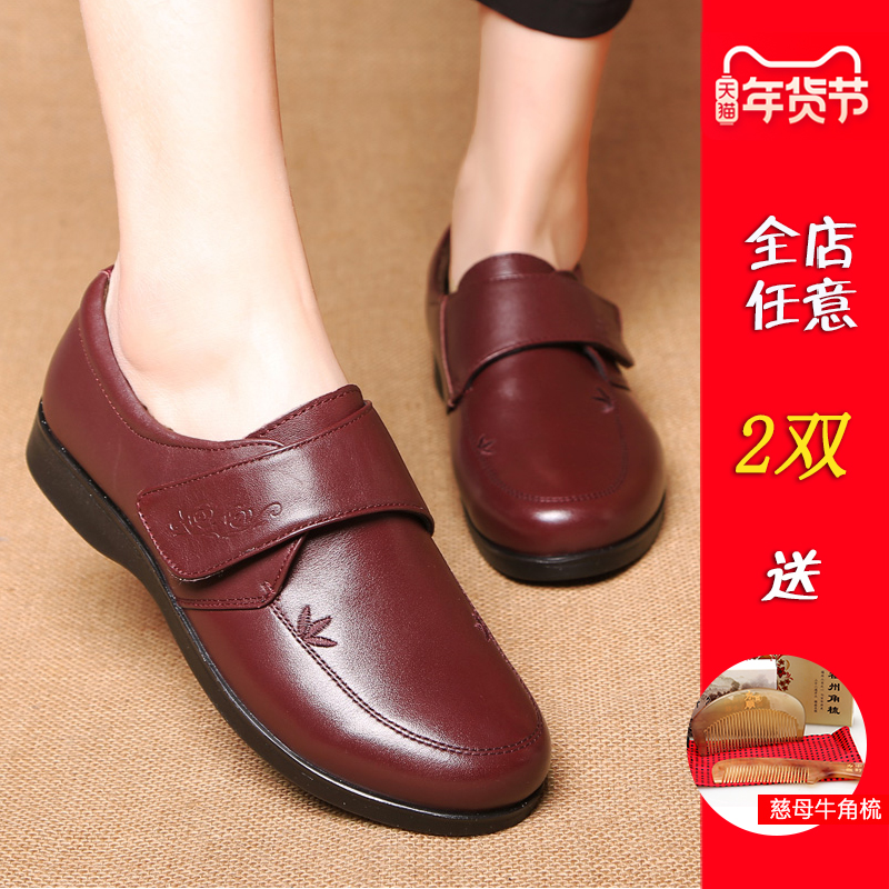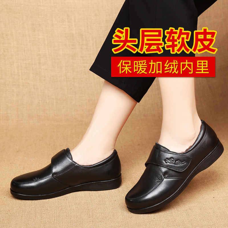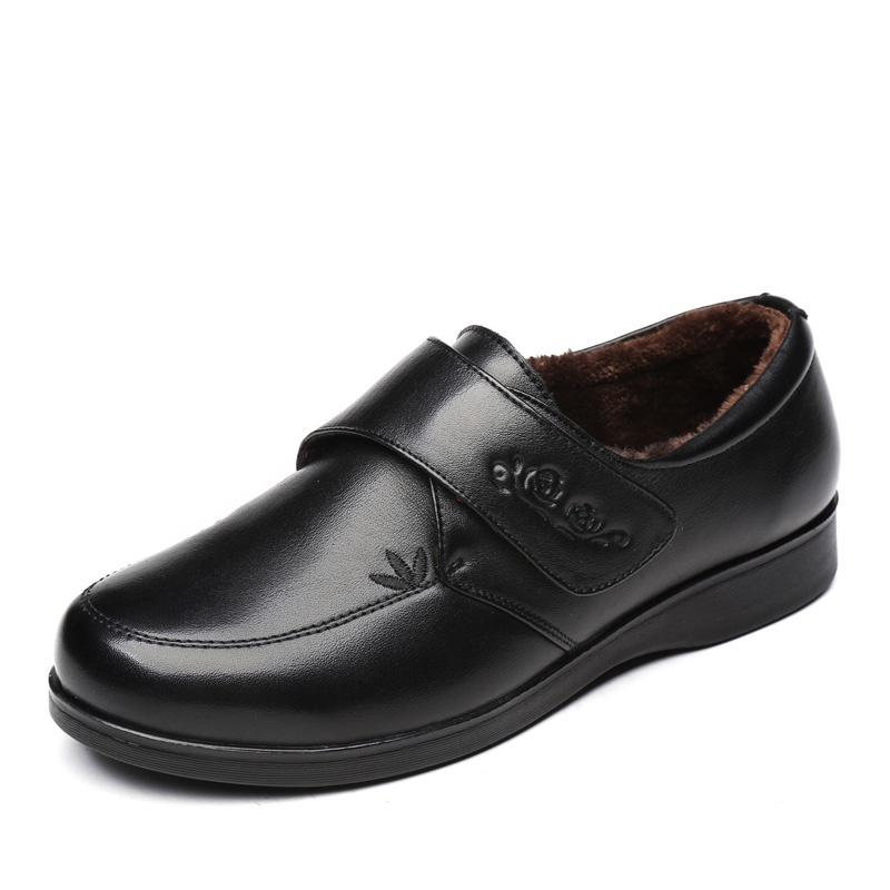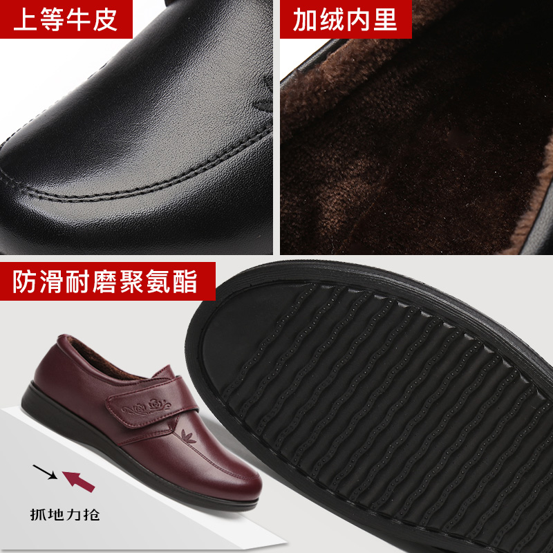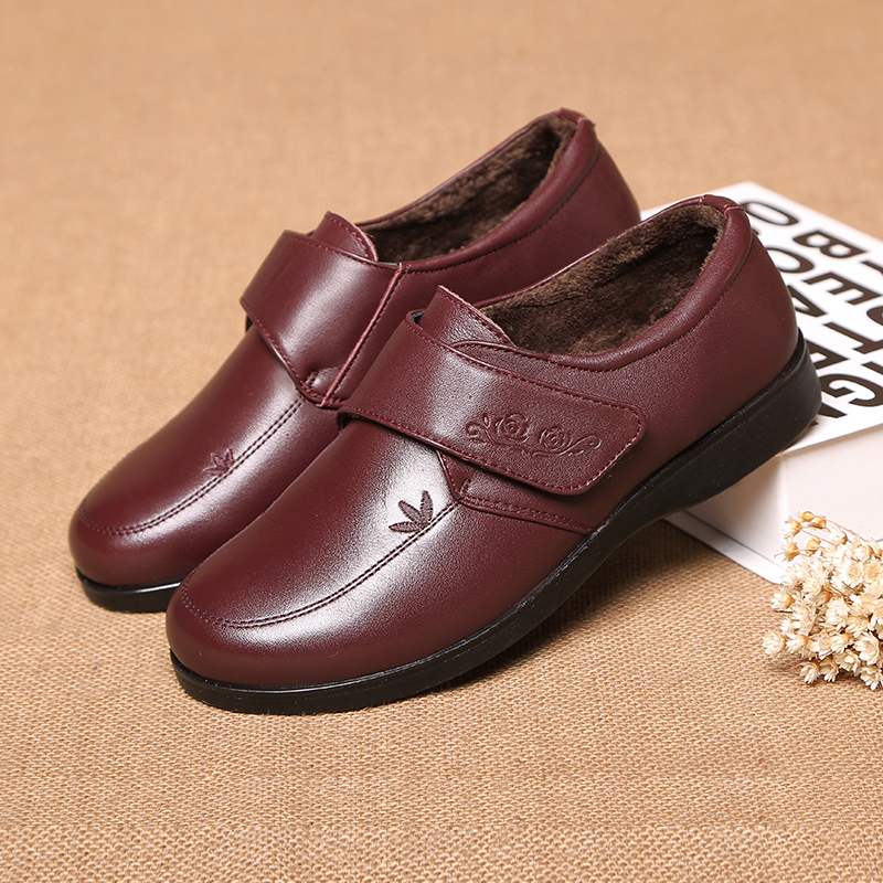 Зимняя комфортная флисовая удерживающая тепло обувь для кожаной обуви для матери, нескользящие туфли, мягкая подошва, для среднего возраста, из натуральной кожи